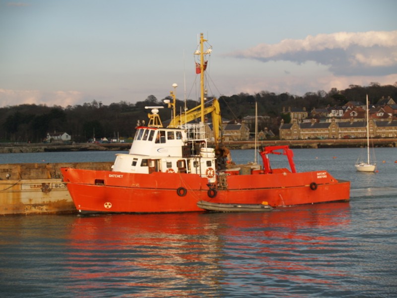 As I recall, DATCHET (or "Rats**t Datchit" as Ralph Mavin christened her) was built for the Royal Navy in Singapore in the late 1960s and then shipped to the UK c.1974 for service as a Diving Tender attached to HMS Vernon. A Singaporean on the Overseas LMCDO course I trained in 1982 told me her sister ship remained in service with his Navy. My LMCDO course used DATCHET for deep diving training at Falmouth in 1976 but she was transferred to the Plymouth Clearance Diving Team around 1978 in exchange for the Fleet Tender IXWORTH. The Plymouth team resented losing IXWORTH in favour of DATCHET but that was before I blew IXWORTH up off Falmouth in 1983 (see 'When Things Go with a Bang!' in the Dit Box).