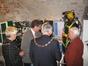 Right: Museum Officer Kevin Casey explains a Kirby Morgan to the Mayor and Mayoress of Gosport