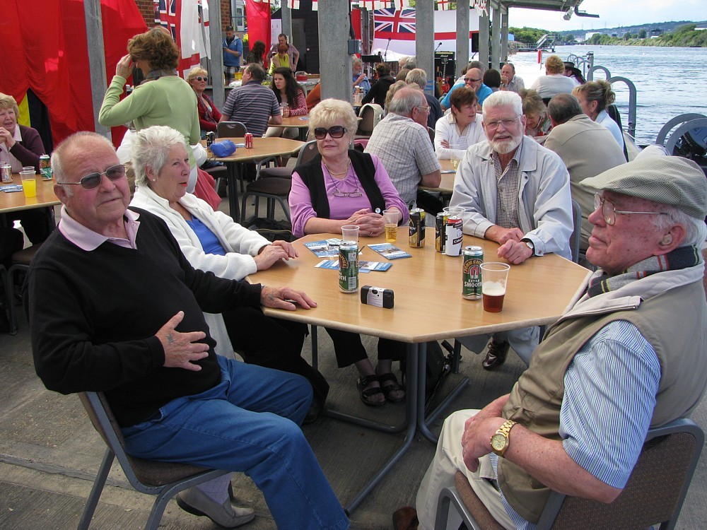 Left: Admiral Ibbotson chats to Peggy Neil with Paul Jones in foreground