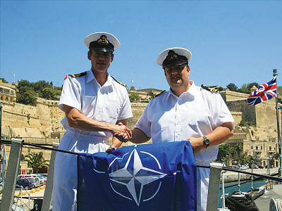 a NATO flag in Malta from Lt Cdr James Byron, CO of HMS Brocklesby