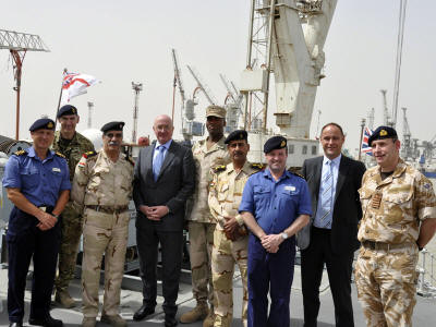 The RN website contains this article describing a recent visit to Umm Qasr in Iraq by HMS Chiddingfold and HMS Grimsby during which Chiddingfold hosted a formal lunch for Britain’s Ambassador to Iraq (Dr John Jenkins), the Head of the Iraqi Navy (Rear Admiral Hussein), the British Consul General for Basra and a number of senior Iraqi, US and RN officers.