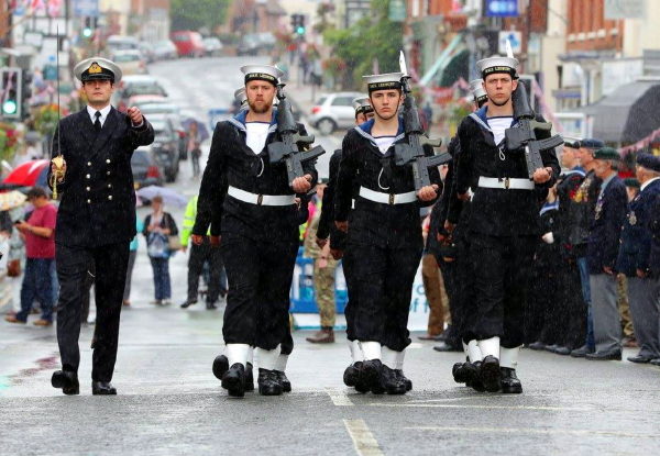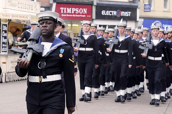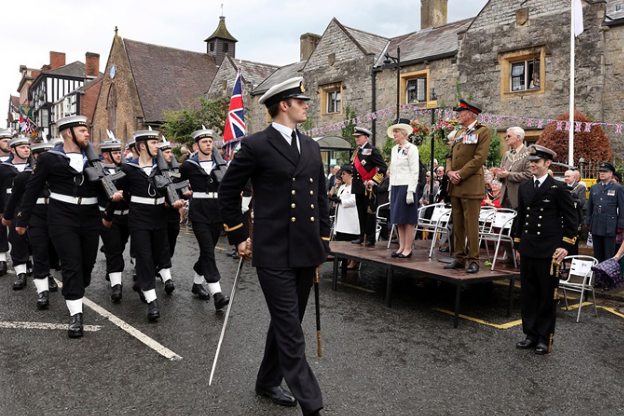 Personnel from HMS Ledbury (MCM2 Crew 7) marked yesterday's Armed Forces Day by leading tributes to the fallen of the Battles of Jutland and the Somme when they paraded through their namesake market town in Herefordshire (see first entry for 16 Jun 16). The town has had an affiliation with HMS Ledbury over several years, including the granting of the Freedom of the town in 2007.