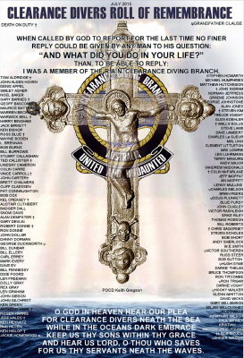 Whenever possible, I have reported the deaths of all ranks on this page and these entries survive in the News Archives as far back as 2002. The RNCDA has trawled names from these for the purposes of the Memorial Garden on Horsea Island (see entry for 7 Oct 16 in News Archive 56) where it is planned to display plaques engraved with the names of deceased RN divers.