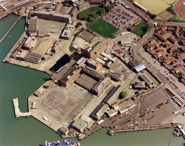 HMS Vernon's Mining Trials Tank was demolished in 1998 in preparation for the Gunwharf Quays development.